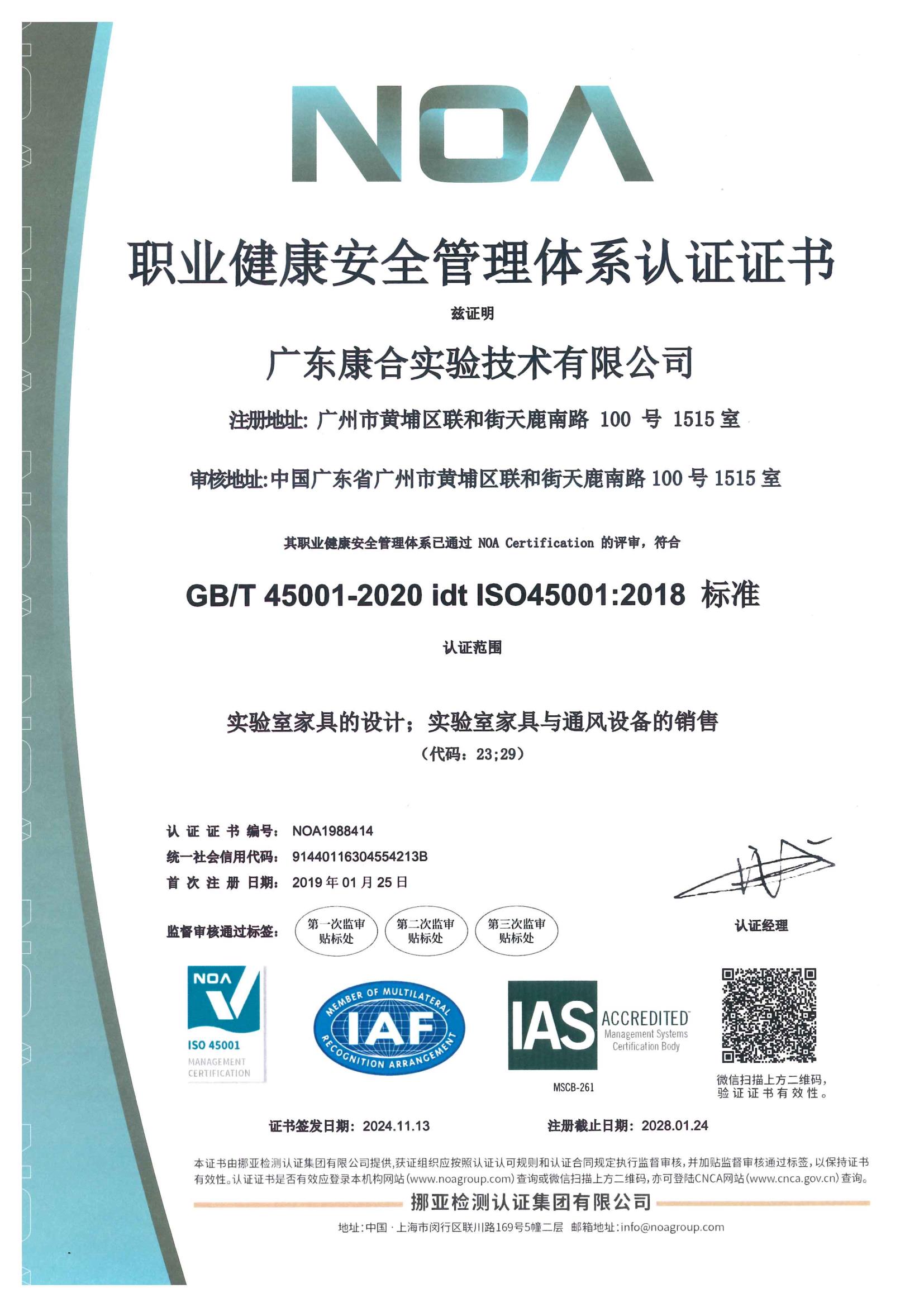 康合憑借雄厚的實驗室設(shè)計實力、規(guī)范的實驗室施工流程以及優(yōu)良的服務(wù)質(zhì)量,通過了ISO9001:2015質(zhì)量管理體系、ISO14001:2015環(huán)境管理體系、BS OHSAS18001:2007職業(yè)健康安全管理體系等多項國際體系認(rèn)證,擁有多項實驗室裝備行業(yè)的專利技術(shù)。